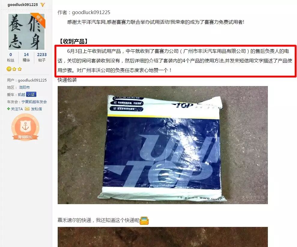 据了解,已体验产品的车友已陆续在太平洋汽车网论坛发布亲身体验的试用报告,向大家分享产品体验效果。